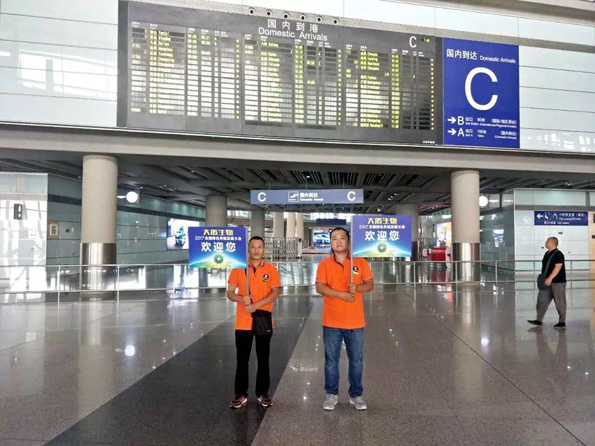 出站時,請認準穿大禹生物黃色T恤和手舉接站牌的接站人員。在您下車(飛機)的第一時間,接站人員會為您做好登記工作,并引領您到達指定乘車地點。
