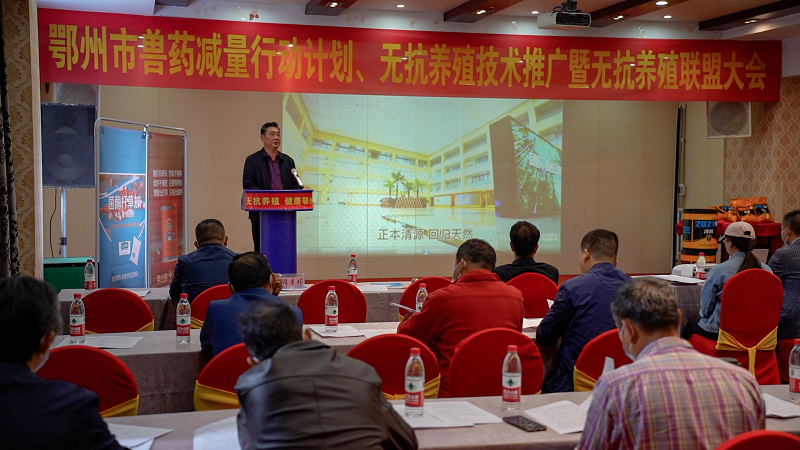 會上,鄂州市畜牧獸醫服務中心相關負責同志對《湖北省獸用抗菌藥使用減量化行動工作方案(2021-2025)》進行了解讀,大禹公司專家作無抗養殖專題技術講座,參會畜禽養殖場及相關企業簽署了無抗養殖《倡議書》,養殖場、養殖專家就無抗養殖技術普及工作進行了深入交流。
