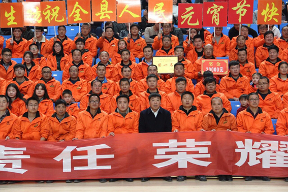 2月28日當天,伴著主持人的開場介紹,雙方主力隊員上場。此時,雖未開賽,場上卻已經彌漫著緊張的氣息,仿佛是一場沒有硝煙的戰爭。隨后,由大禹生物董事長閆和平開球,比賽正式開始。在全場觀眾的歡呼聲中,大禹生物等四支代表隊進入了四強的比拼。“大禹加油,大禹必勝”的口號中,大禹生物隊一路領先,成功晉級,殺入決賽。