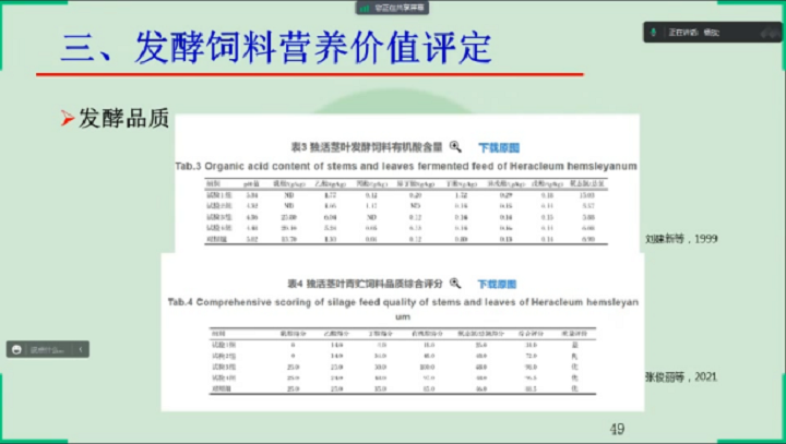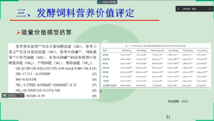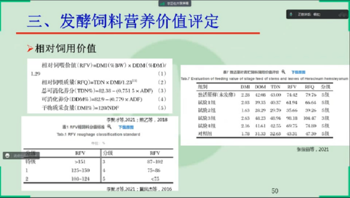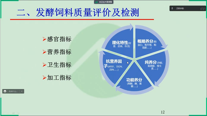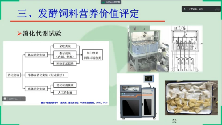 楊教授從發酵飼料進展概述、發酵飼料質量評價與檢測以及發酵飼料營養價值評定三個方面講解了發酵飼料質量檢測與營養價值評定。